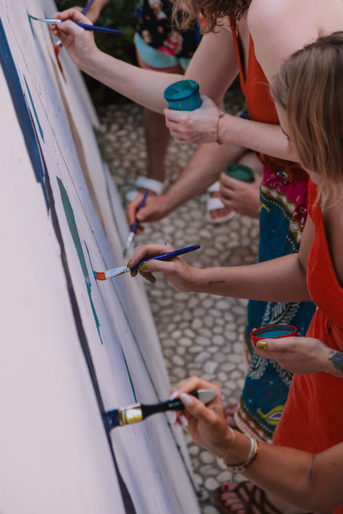 Otelde sezon boyunca yer alan resident artist Alena Sergi ise kolektif işleriyle sanat terapisi temelli üretimlerini izleyicilere sunarak, duyusal ve içsel bir alan yarattı. Alena’nın hem sezona yayılan atölye programı hem de mekânsal yerleştirmeleri, izleyicilerde kişisel bir keşif duygusu uyandırıyor. Objelere ve dünyaya prizmatik bir açıdan bakan Alena Sergi kendi tarzını “Contemporary Street Art” olarak tanımlıyor. Eserlerinde çalıştığı portrelerde kullandığı canlı renklerle dikkat çeken sanatçı, sanat terapisinin bir öğretisiyle bunu açıklıyor: “Olumsuz duyguları canlı renklerle ifade etmek sanat terapisinde çok kullandığımız bir aktarımdır, çekildiğimiz renkler aslında bizim beslemeye çalıştığımız yanımızdır. Ben de eserlerimde bu renklerimi kullanarak kendimi ifade ediyorum.”